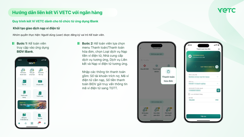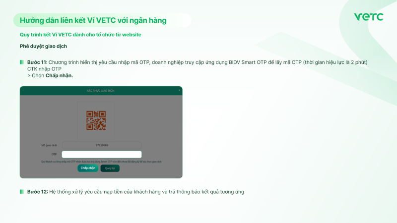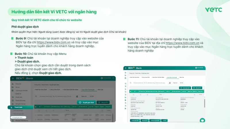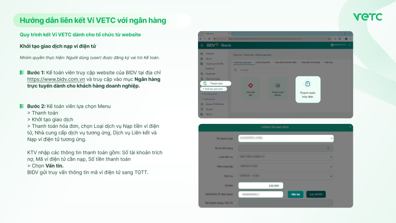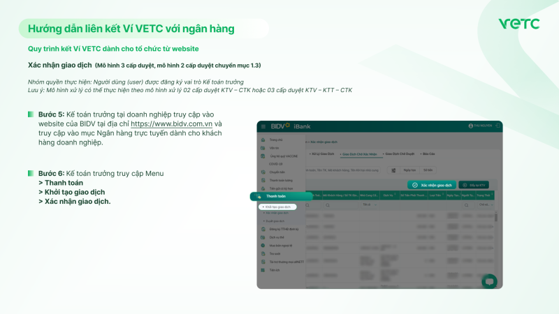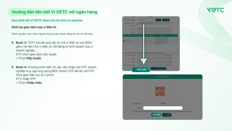Quy trình kết Ví VETC dành cho tổ chức từ website