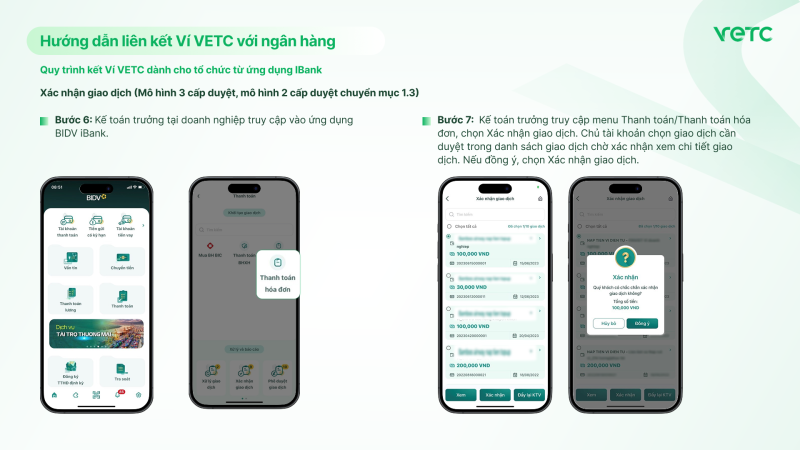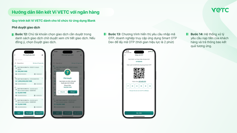 Quy trình kết Ví VETC dành cho tổ chức từ ứng dụng IBank