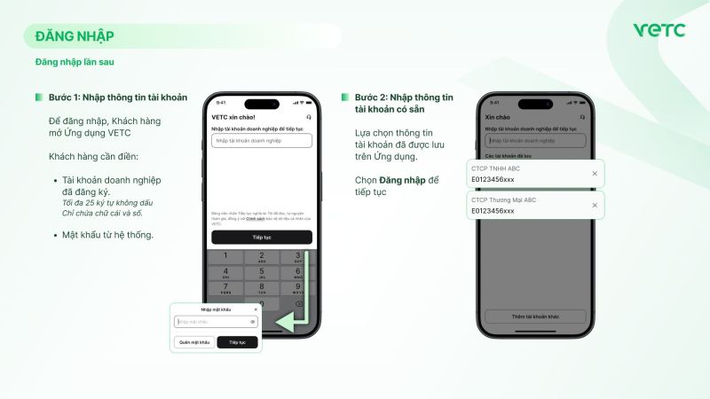 Để đăng nhập, Khách hàng mở Ứng dụng VETC