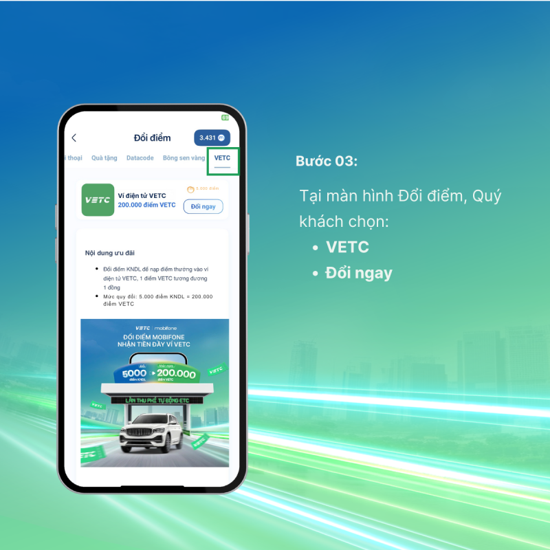 Tên chương trình: Đổi điểm MobiFone - Nhận tiền đầy Ví VETC