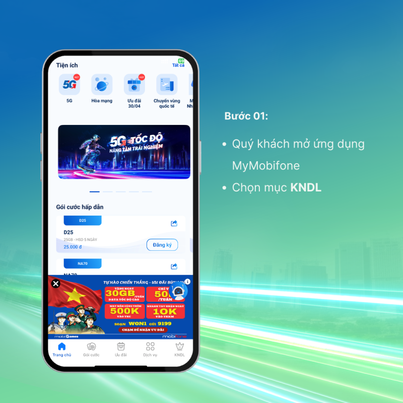 Bước 1: Truy cập vào mục “Kết Nối Dài Lâu” trong ứng dụng MyMobiFone.