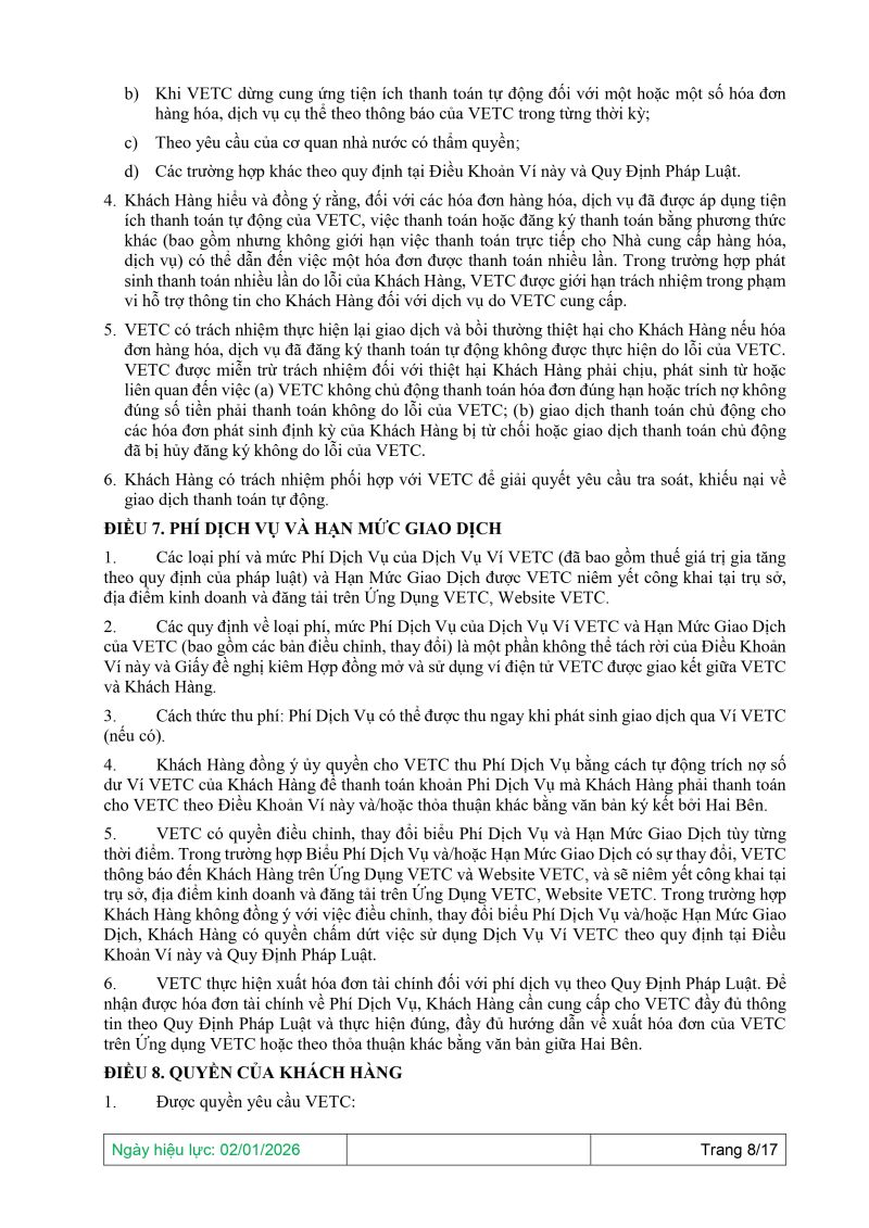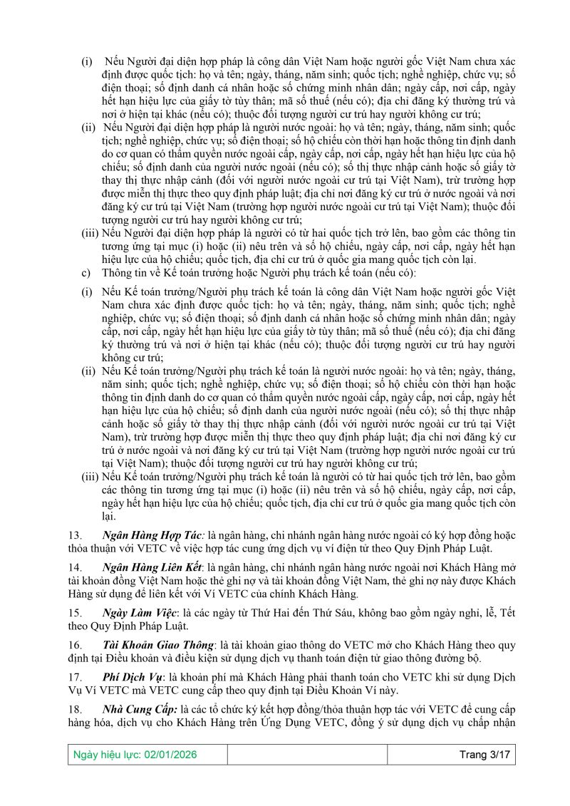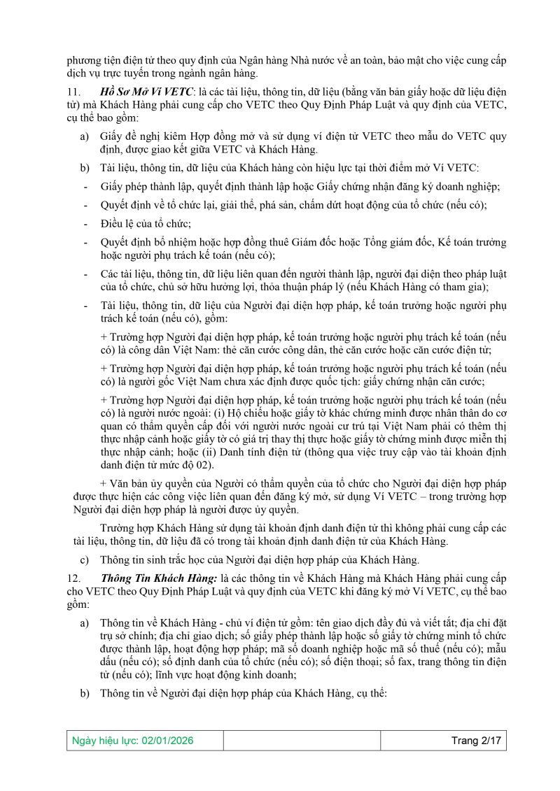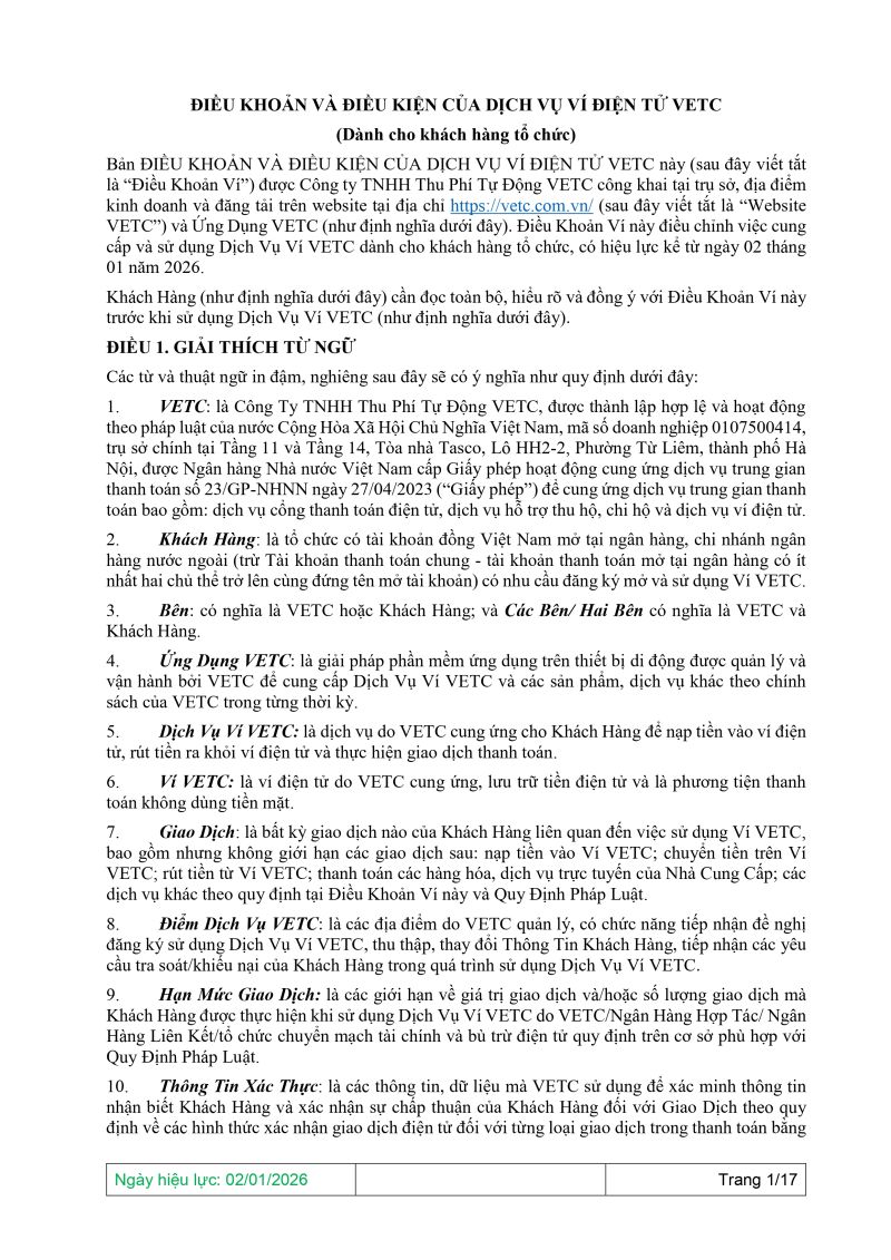 ĐIỀU KHOẢN VÀ ĐIỀU KIỆN CỦA DỊCH VỤ VÍ ĐIỆN TỬ VETC (Dành cho khách hàng tổ chức)