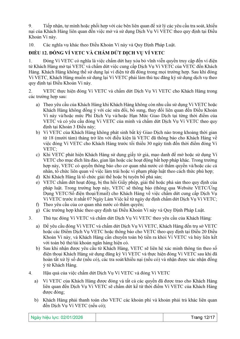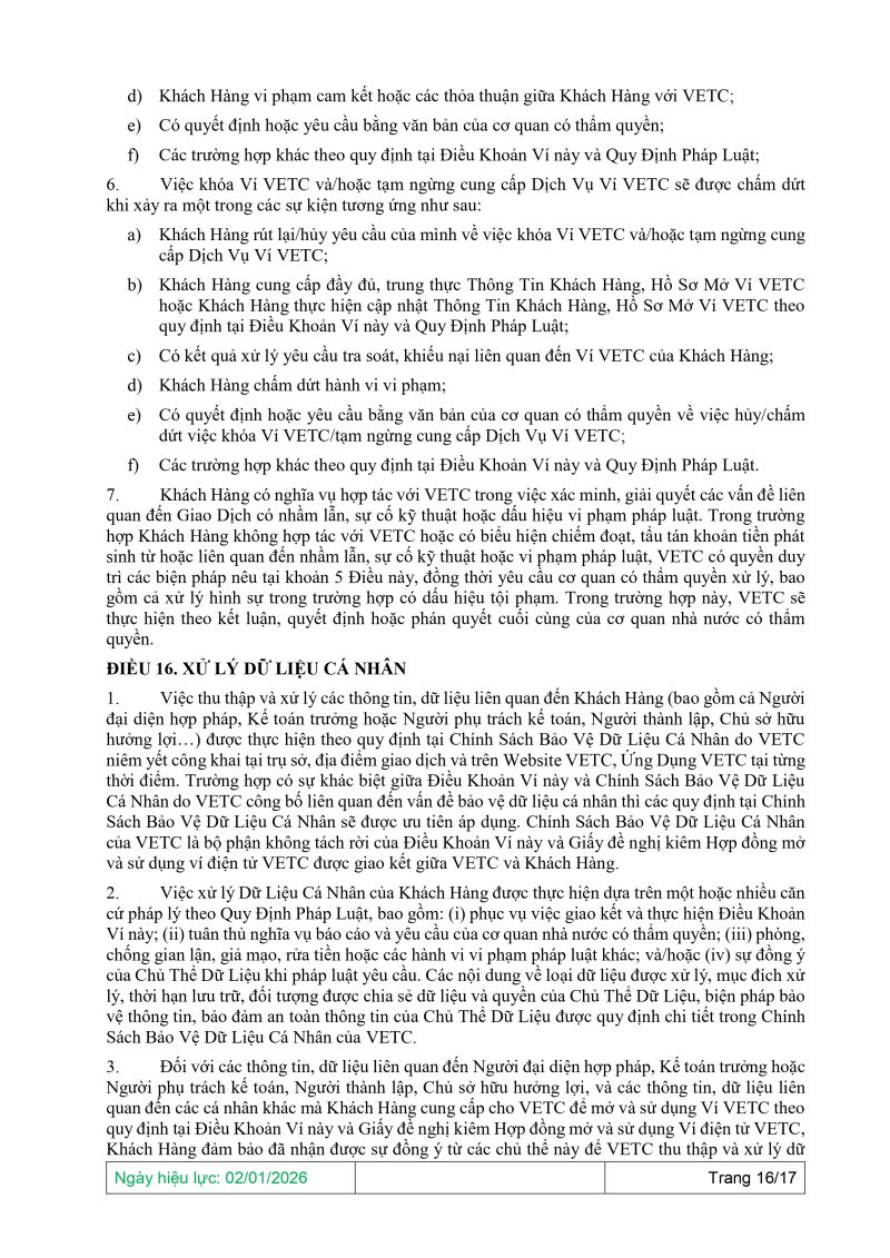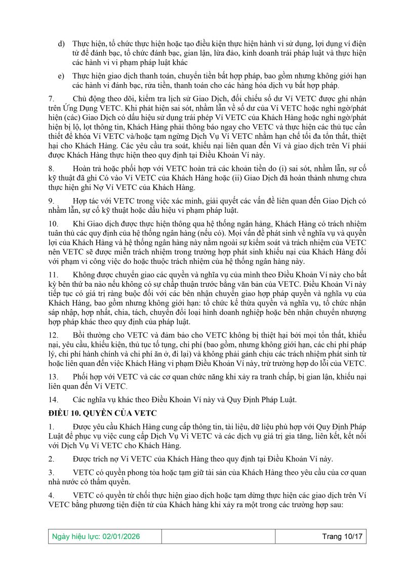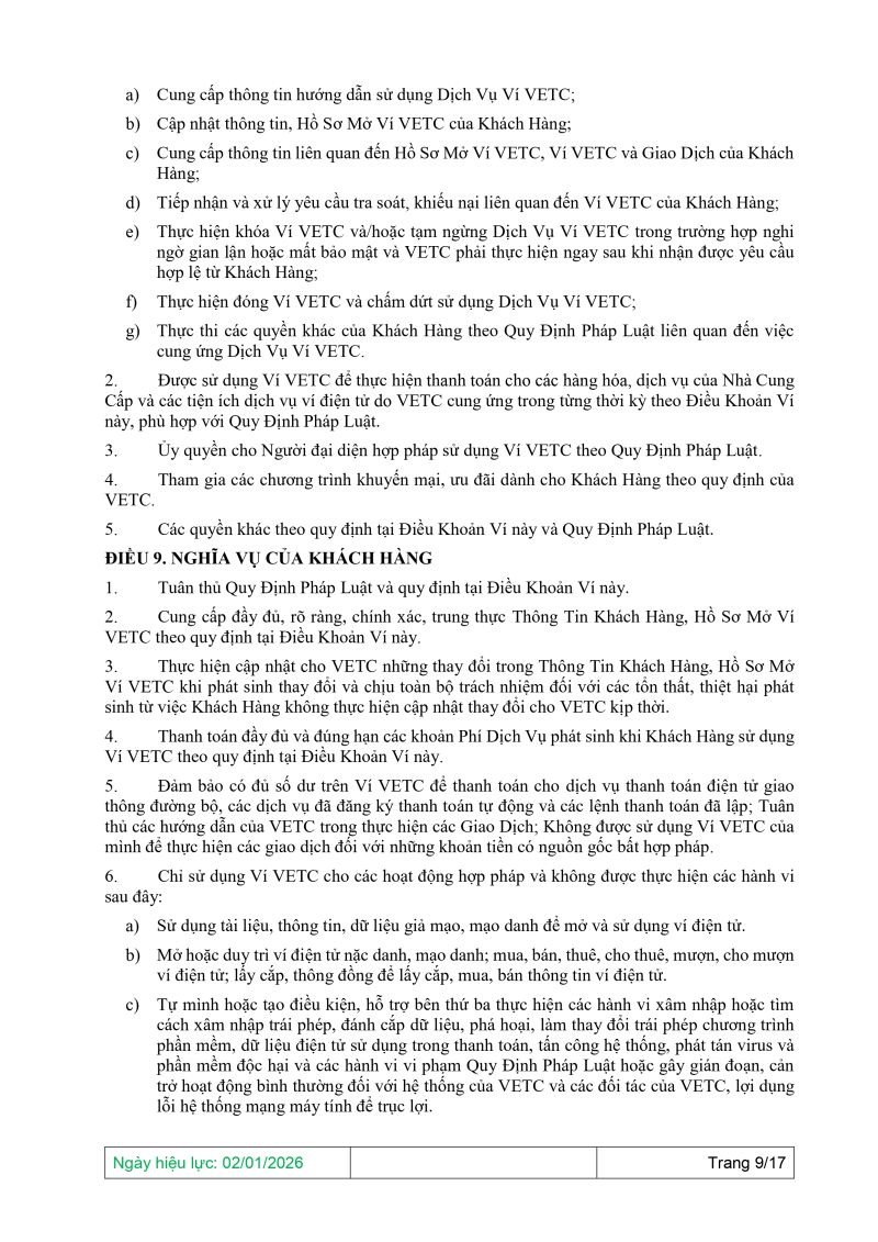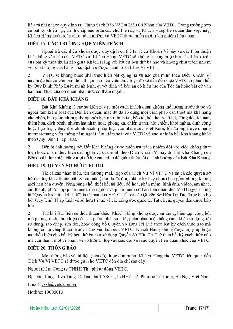 ĐIỀU KHOẢN VÀ ĐIỀU KIỆN CỦA DỊCH VỤ VÍ ĐIỆN TỬ VETC (Dành cho khách hàng tổ chức)