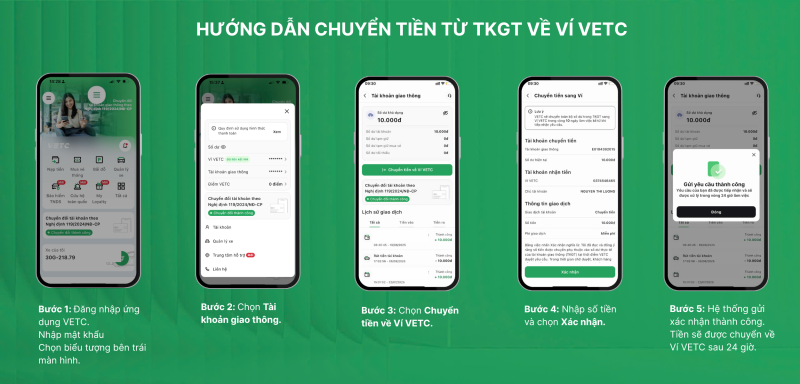Số tiền chuyển về Ví VETC tiếp tục được sử dụng để thanh toán phí dịch vụ ETC trên toàn quốc. Quý khách hãy thường xuyên kiểm tra tài khoản và đảm bảo số dư trước khi di chuyển.