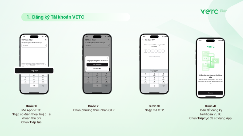 Quá trình mở tài khoản VETC hoàn toàn miễn phí và được thiết kế tối ưu hóa trên mọi thiết bị. Để bắt đầu hành trình trải nghiệm đa dịch vụ, bạn chỉ cần thực hiện các thao tác đơn giản sau: