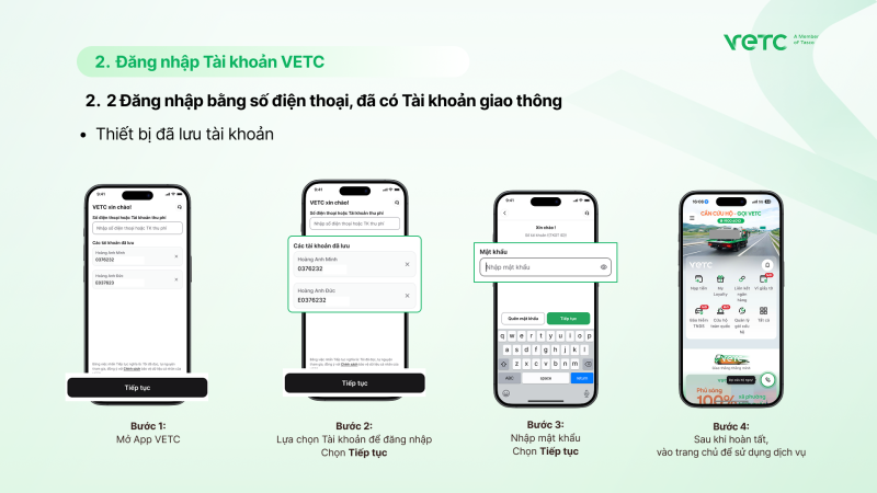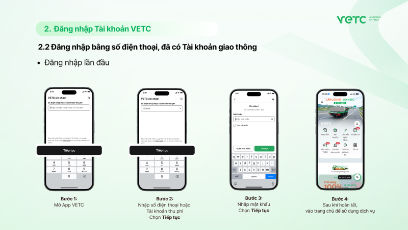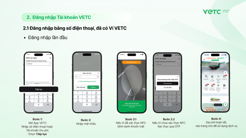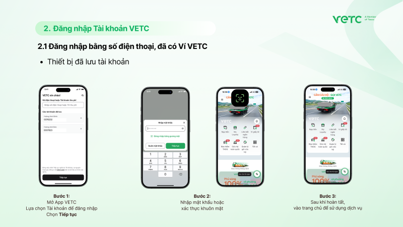 2.1 Đăng nhập bằng số điện thoại, đã có Ví VETC
