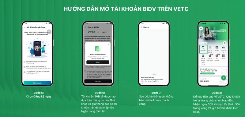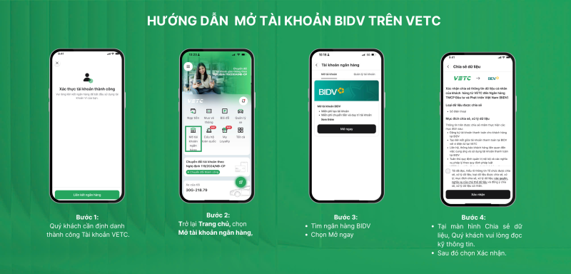 Để sở hữu tài khoản BIDV và nhận ưu đãi, Quý khách chỉ cần thực hiện một số thao tác đơn giản ngay trên ứng dụng VETC. Toàn bộ quy trình được số hóa để mang lại sự tiện lợi, nhanh chóng và an toàn tối đa.