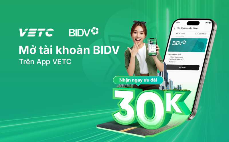 Chỉ cần vài chạm trên ứng dụng VETC, bạn đã có ngay tài khoản ngân hàng BIDV, tiện lợi cho mọi giao dịch và nhận thưởng 30.000đ hấp dẫn. Đừng bỏ lỡ món quà dành riêng cho bạn.