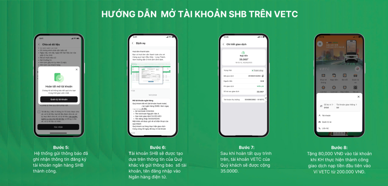 Sau khi mở tài khoản thành công tại SHB, tài khoản VETC của KH sẽ được cộng 35.000đ.