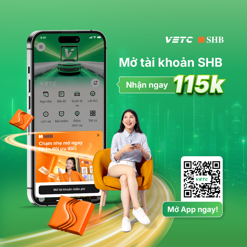 Ưu đãi hấp dẫn lên đến 115.000Đ khi mở tài khoản SHB trên ứng dụng VETC. Từ ngày 26/09/2025, VETC và đối tác chiến lược SHB sẽ mang với chương trình ưu đãi cho khách hàng thân yêu của VETC. Sẵn sàng khám phá và rinh quà ngay hôm nay.
