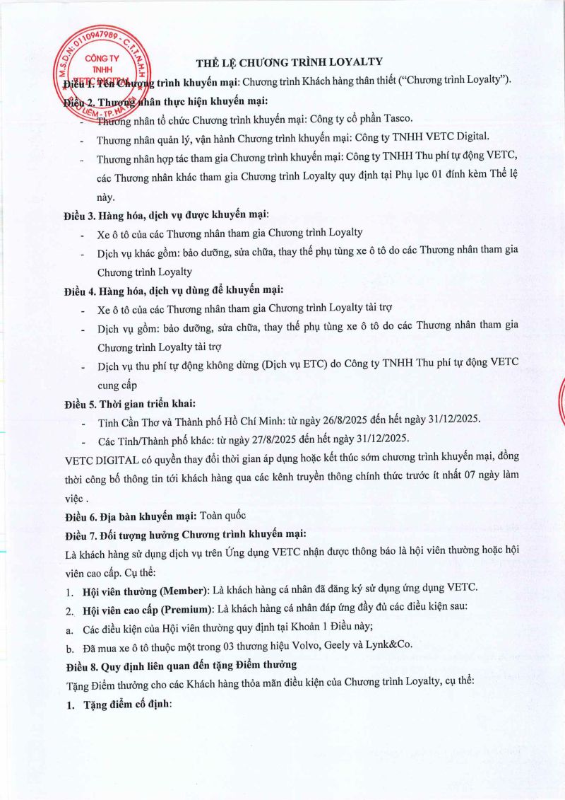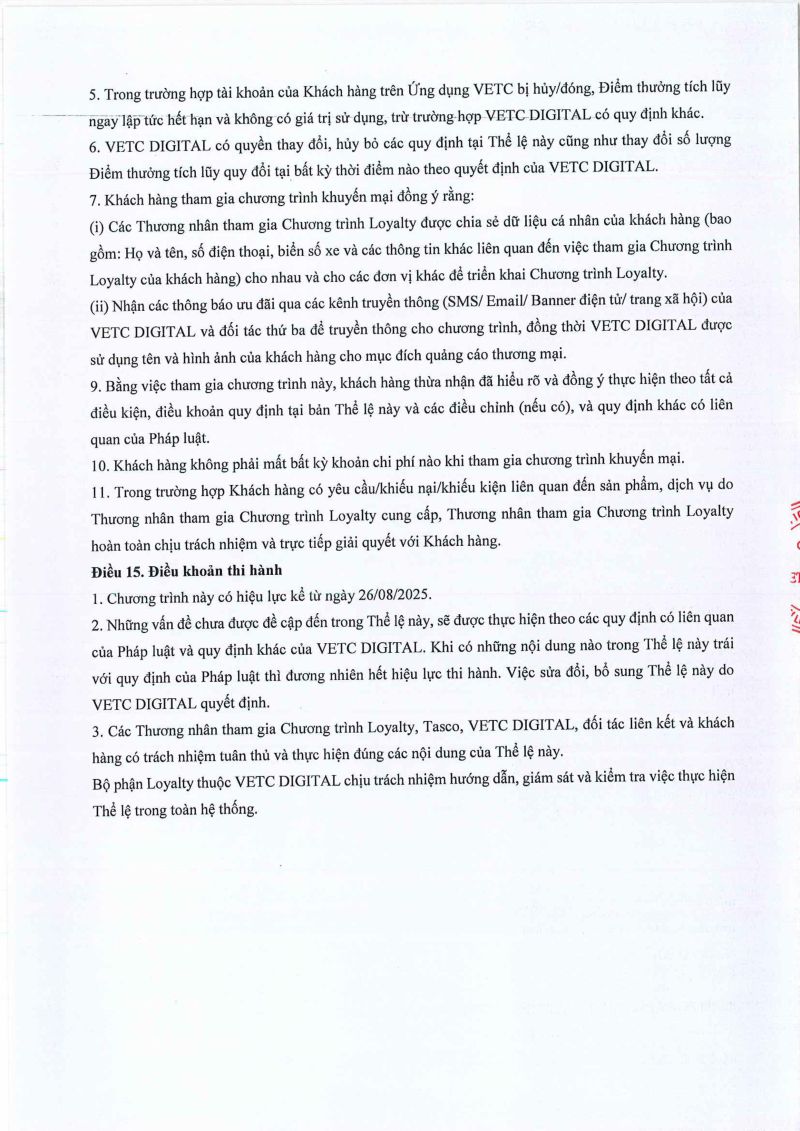 Thể lệ chương trình khách hàng thân thiết VETC Loyalty