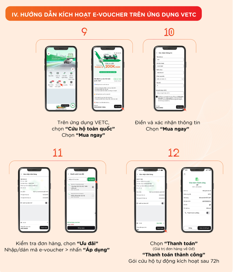 Bước 5: Sao chép mã e-voucher và dán vào mục “Ưu đãi” khi chọn mua Gói cứu hộ toàn quốc trên ứng dụng VETC.