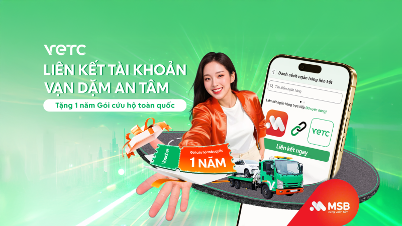 Nhằm mang đến thêm giá trị thiết thực cho người dùng trong quá trình trải nghiệm hệ sinh thái giao thông số, VETC chính thức hợp tác cùng MSB triển khai chương trình ưu đãi dành riêng cho khách hàng liên kết tài khoản thanh toán MSB với ví VETC.